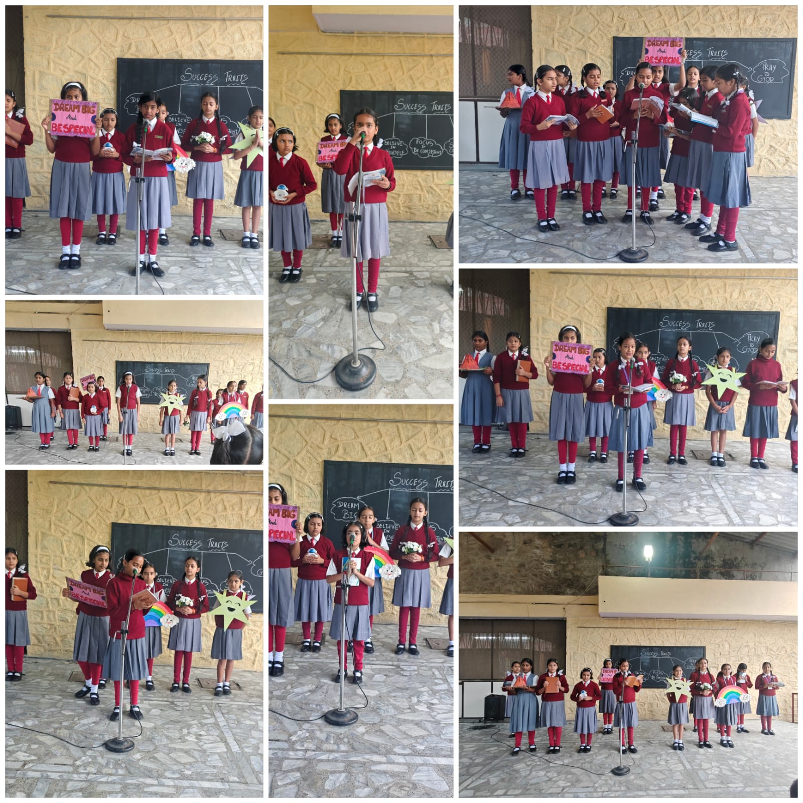 Class 5A focused on themes like Dream Big, Believe in Yourself, Consistency, Self Confidence, and The Power of Prayer. The students used creative metaphors — clock, star, flower, mountain, book, and rainbow — to show uniqueness. The Mahabharata skit, Trisha Goyar’s poem, and the action song “Yes, We Can!” added depth and motivation. The class concluded by expressing gratitude to Sister Mary , their class teacher and all primary teachers as they move to the secondary section.