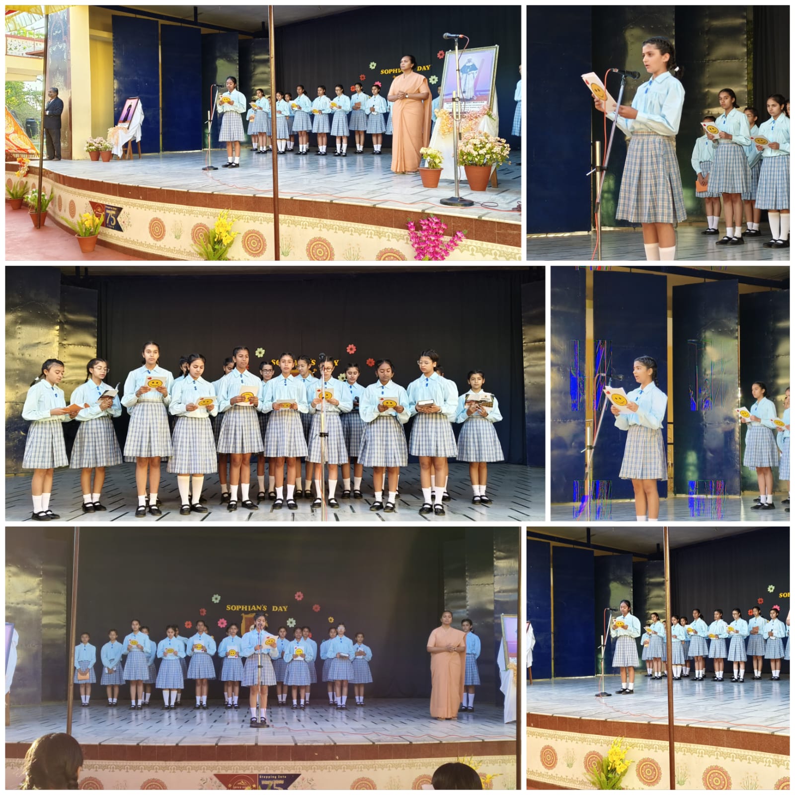 The assembly continued with the hymn “Teri Hai Zameen” and a short life sketch of Mother Mary Matilda, highlighting her dedication to the education and formation of young girls. As a tribute, Sister garlanded her portrait while teachers offered petals. The values of the institution were also highlighted through the meaning of S.O.P.H.I.A., representing wisdom, openness, excellence, humility, integrity, and service. Adding joy to the celebration, Class V students presented a graceful dance. The programme concluded with the Sophian’s Pledge and the Sophia Anthem, filling the atmosphere with pride and unity.