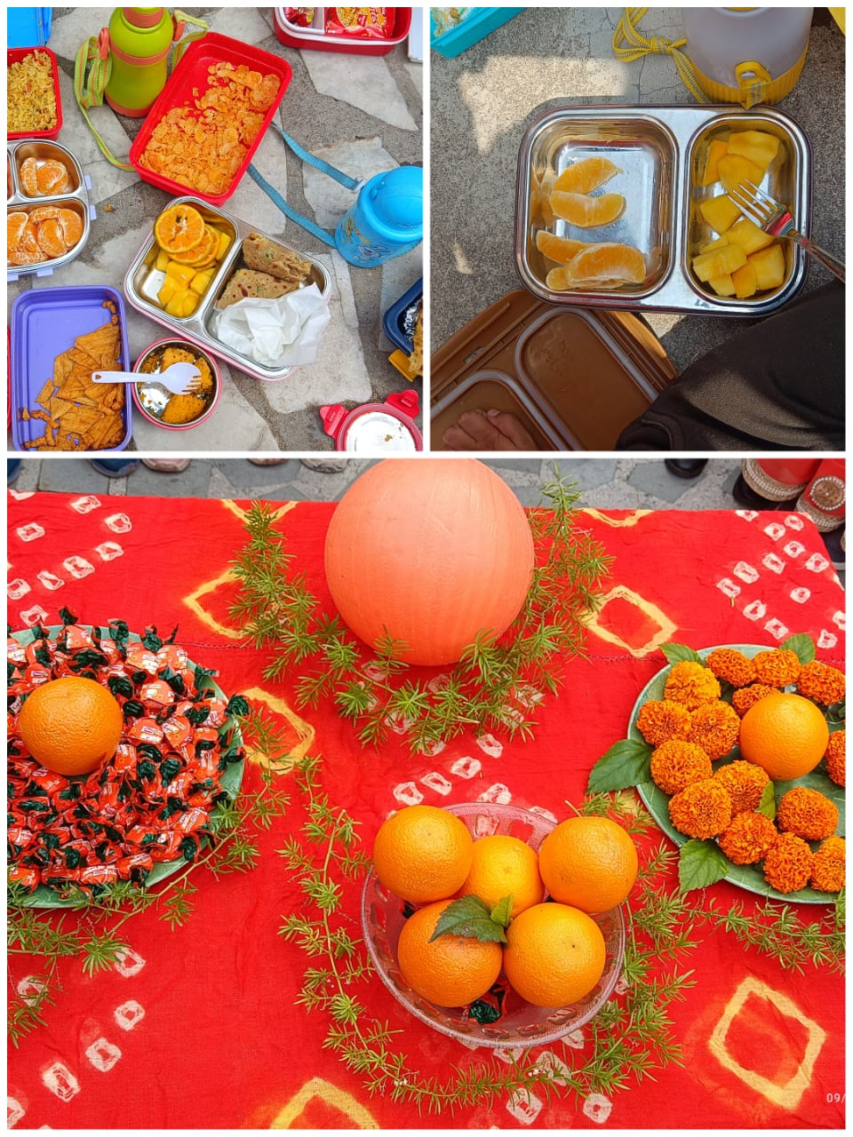 The corridors were beautifully decorated with orange flowers and fruits, creating a cheerful atmosphere. A special morning assembly and orange-themed lunch added to the excitement, making it a fun-filled, colorful day of learning and celebration.