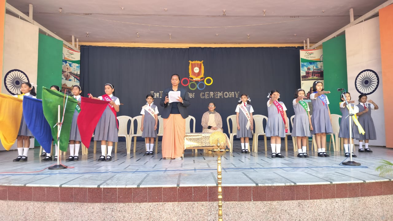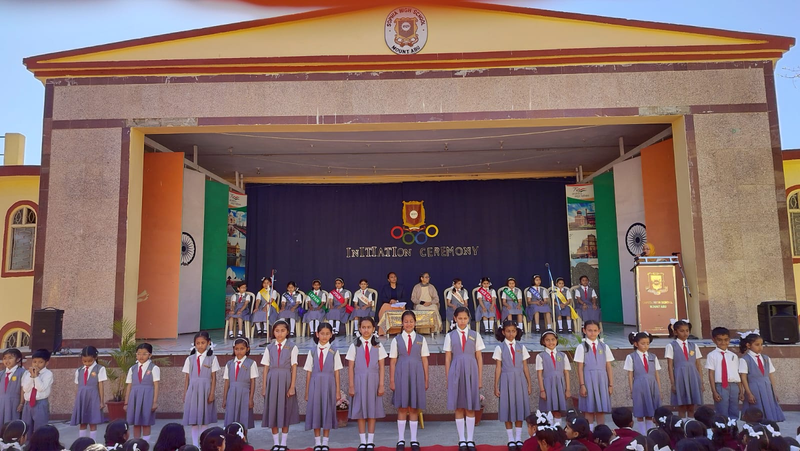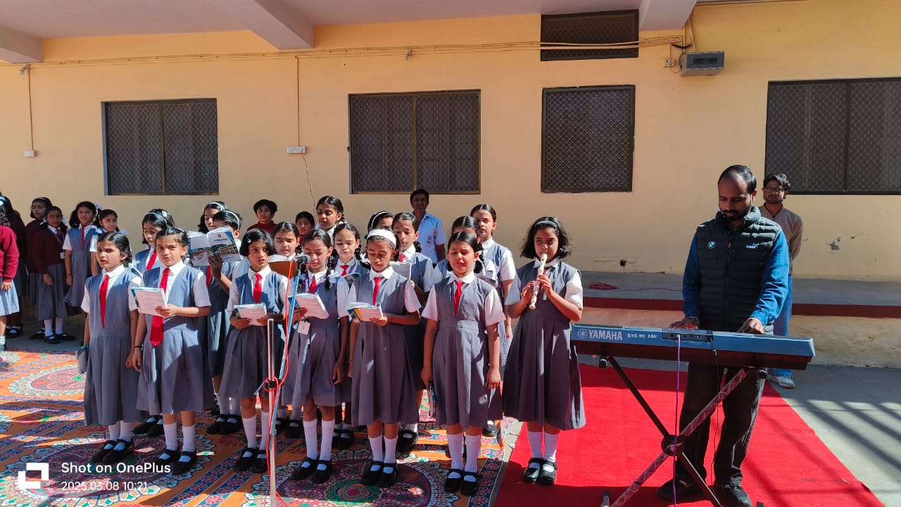 The Initiation Ceremony of Sophia High School, Mount Abu, held on 8th March 2025, celebrated leadership and coincided with International Women’s Day. The event began with a march past by the office bearers, followed by a warm welcome, the lighting of the lamp, and a solemn prayer service seeking divine blessings.
