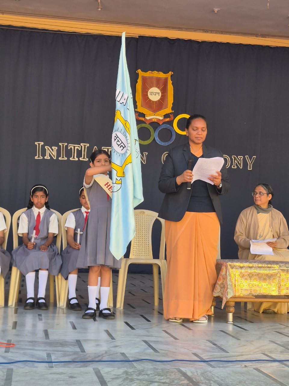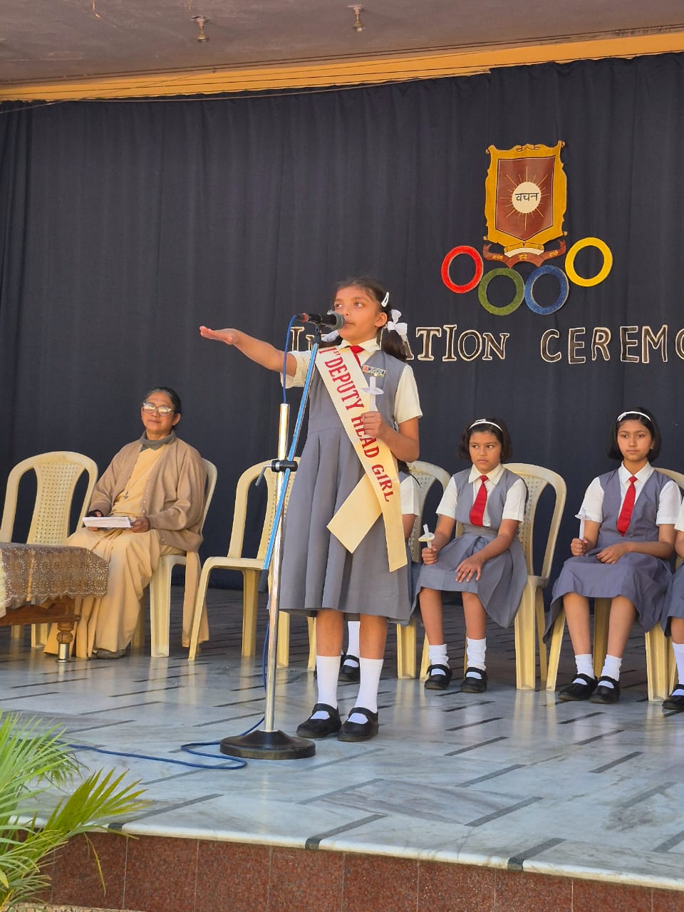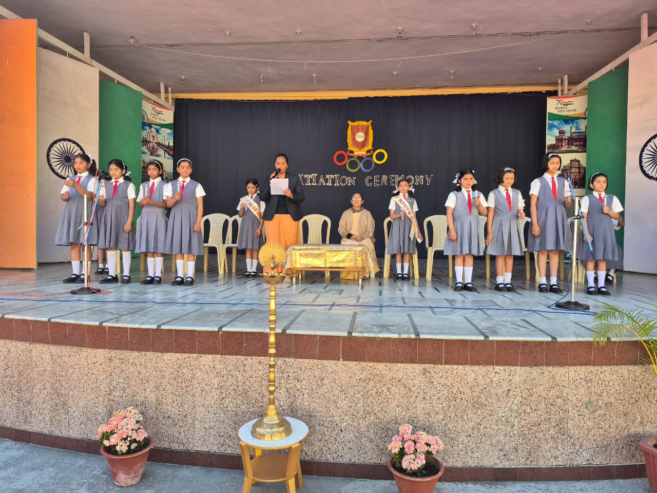 The Initiation Ceremony of Sophia High School, Mount Abu, held on 8th March 2025, celebrated leadership and coincided with International Women’s Day. The event began with a march past by the office bearers, followed by a warm welcome, the lighting of the lamp, and a solemn prayer service seeking divine blessings.