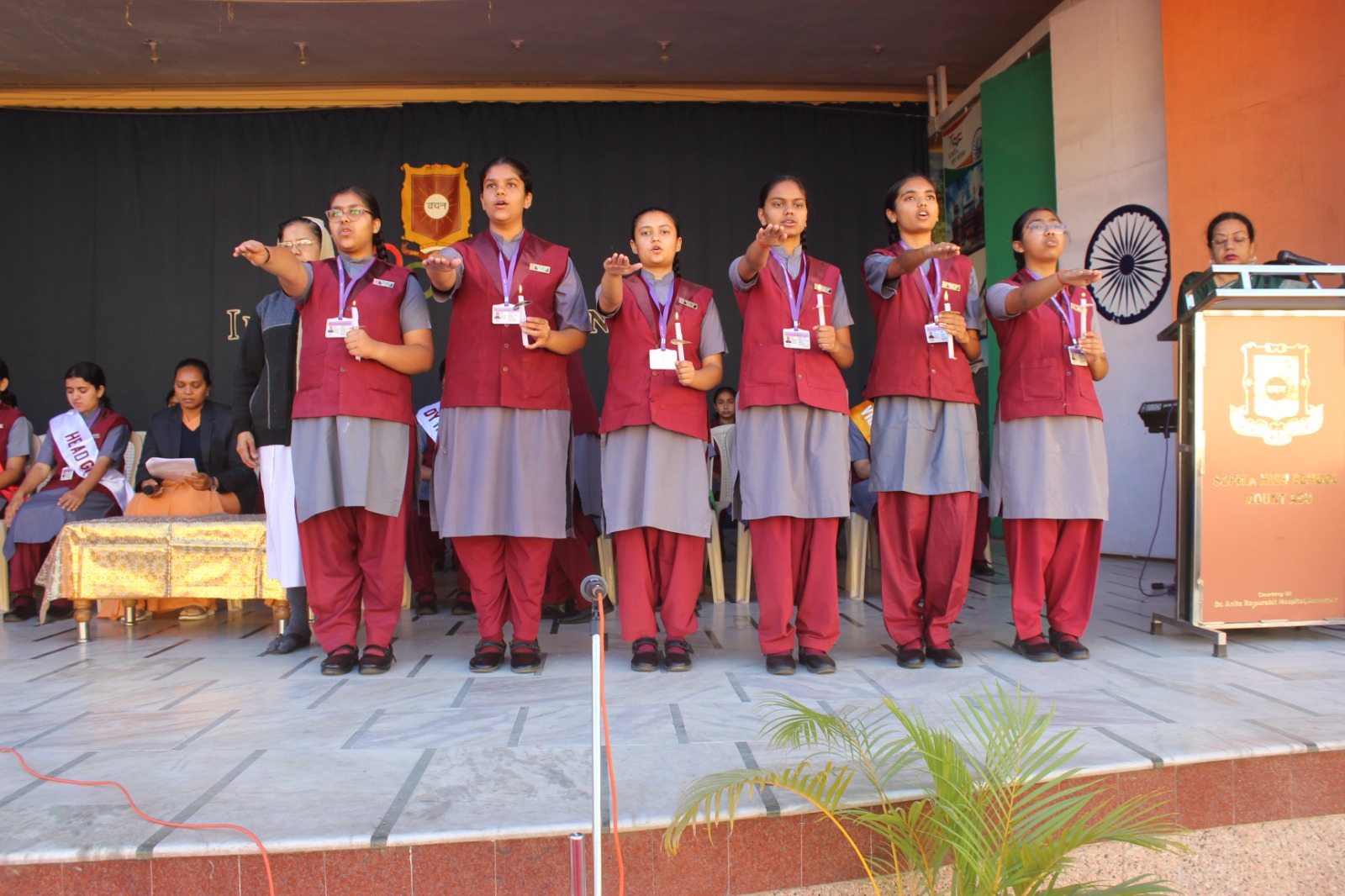 The Secondary Students' Initiation Ceremony was a resounding success, marking a significant milestone in the academic journey of our students. The event commenced with a warm welcome address, followed by the symbolic lighting of the lamp, which represented the pursuit of knowledge, wisdom, and enlightenment. Students then took an oath to uphold Sophia High School's values and strive for excellence in academics and personal growth. The investiture ceremony saw house representatives and newly appointed leaders being formally inducted and entrusted with their roles and responsibilities. The ceremony concluded with a motivational address by the Principal, encouraging students to aim high, embrace challenges, and make the most of their academic journey. Overall, the ceremony was a momentous occasion that inspired and motivated our students to excel in all aspects of school life.