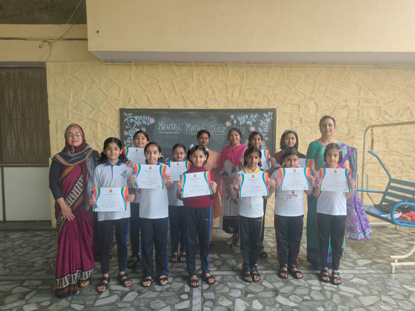 Ruby House teachers successfully organized an exciting and intellectually enriching Mental Maths Quiz for Classes 4 and 5 on 19th July 2025. The event, conducted by Mrs.Tarannum as the Quiz master and Mrs.Ritu as the scorekeeper, featured five stimulating rounds that kept students on their toes: