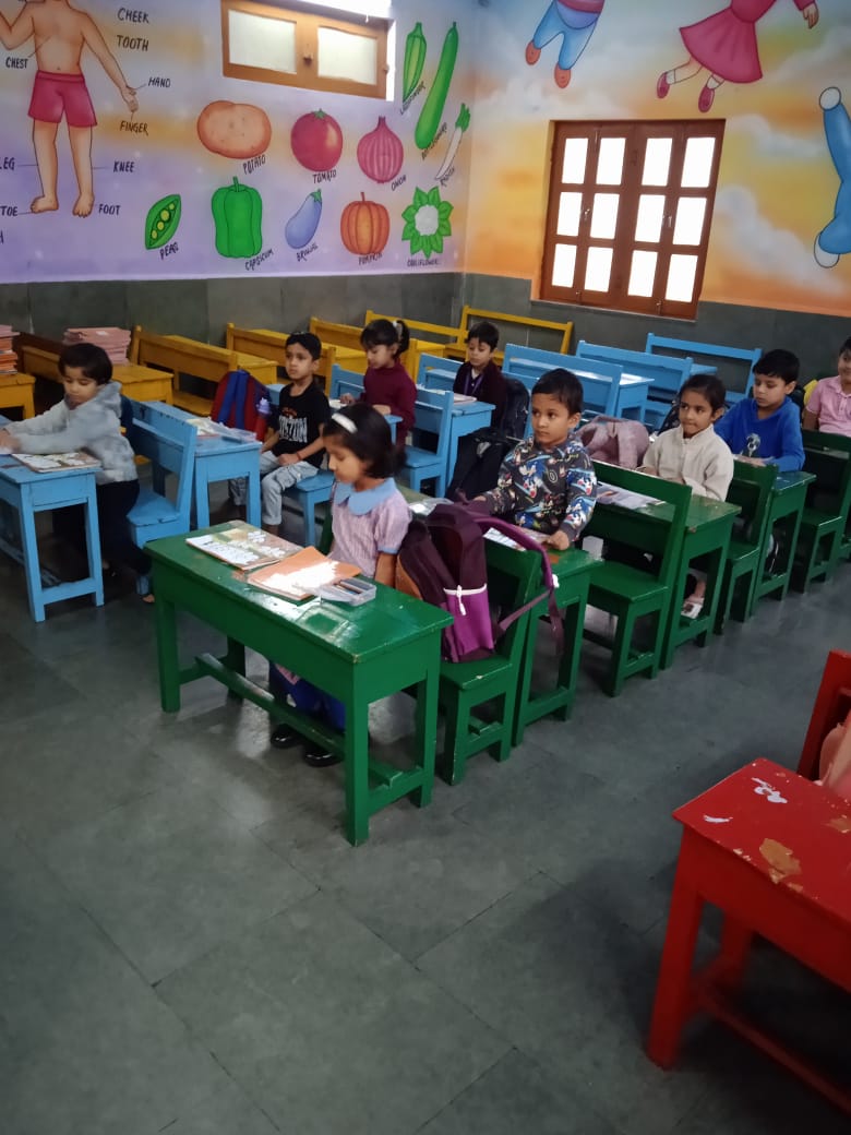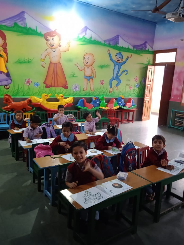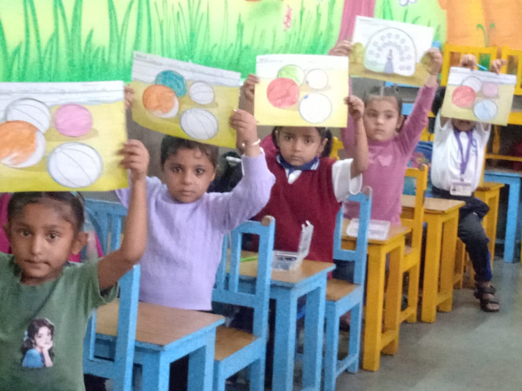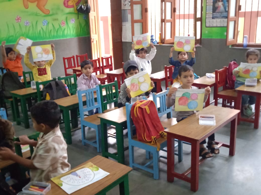 Children were given crayons, pencils, and drawing sheets to express their ideas freely. Teachers guided and encouraged each child, appreciating their efforts and unique interpretations.