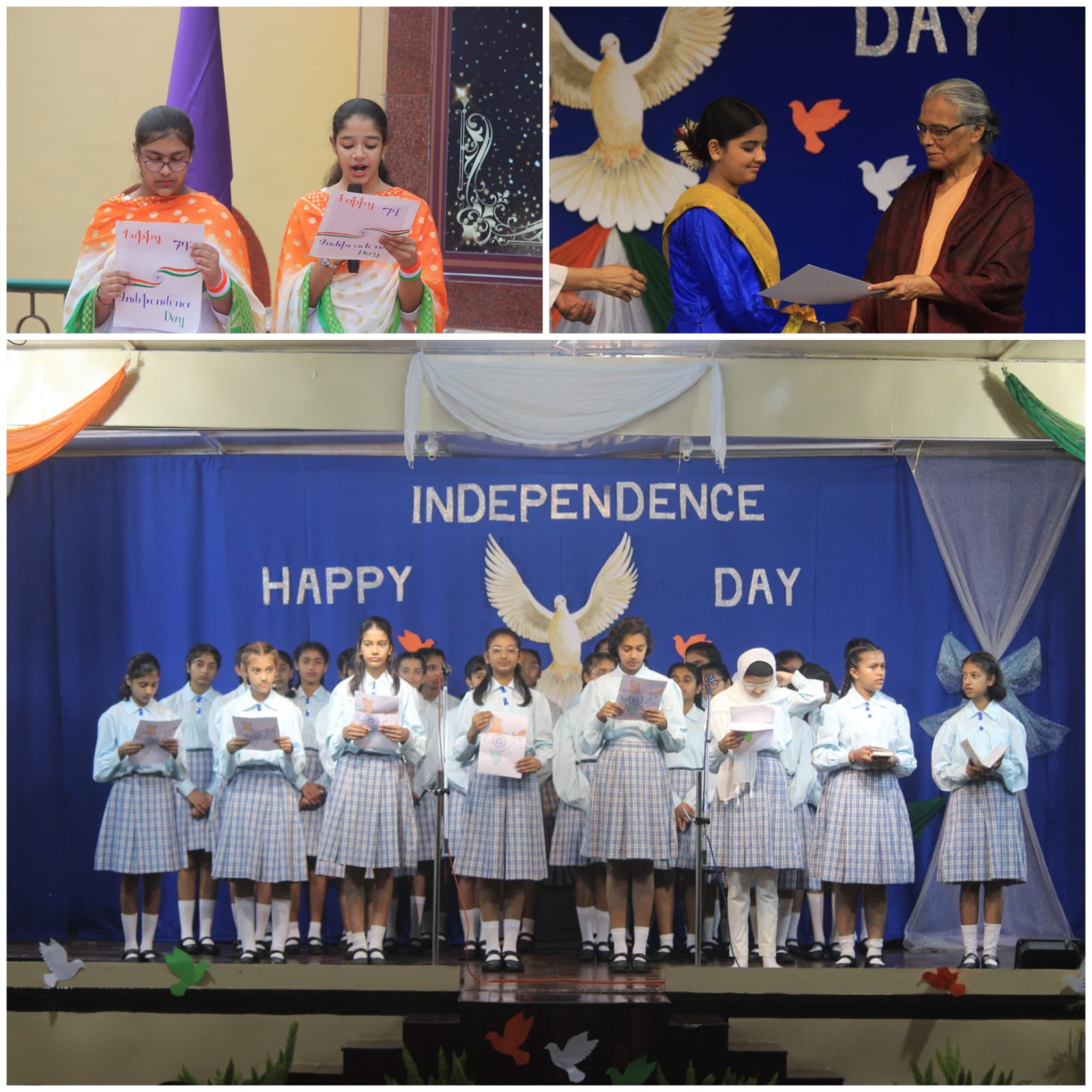 The celebration began on the school ground with the flag hoisting ceremony, led by our honorable Chief Guest and Manager, Sr. Prema, accompanied by our Principal, Sr. Abha. As the tricolor unfurled, the solemn notes of the National Anthem resonated in the air, stirring hearts with deep love for the nation.