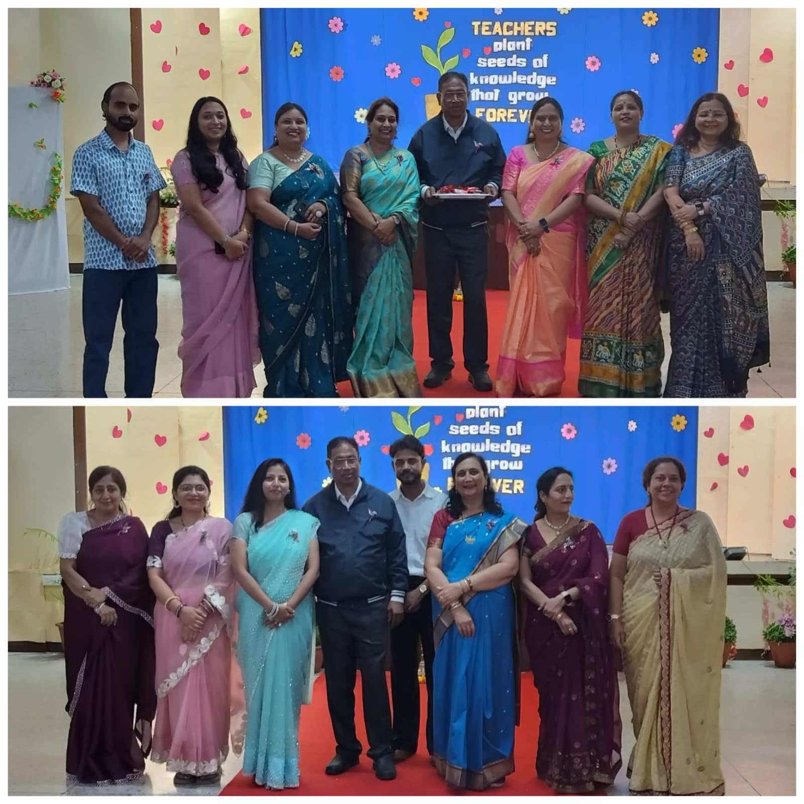 The teachers were warmly welcomed by the students with favours, and the school hall was beautifully decorated, creating a festive atmosphere befitting the occasion.