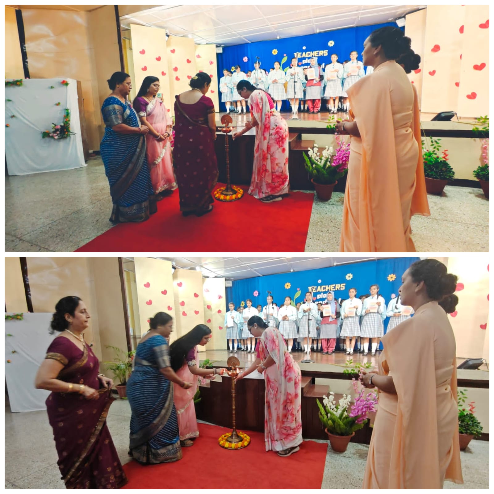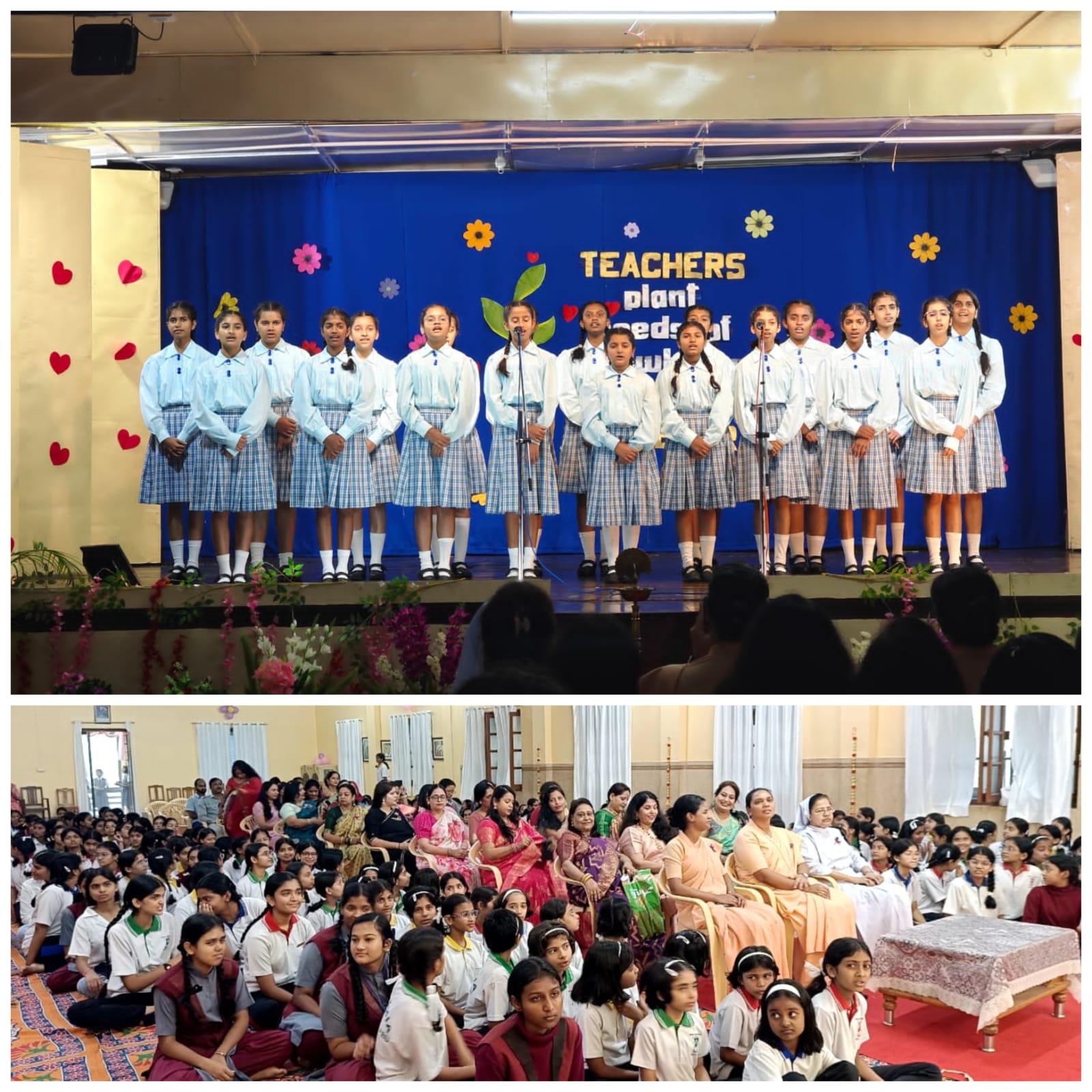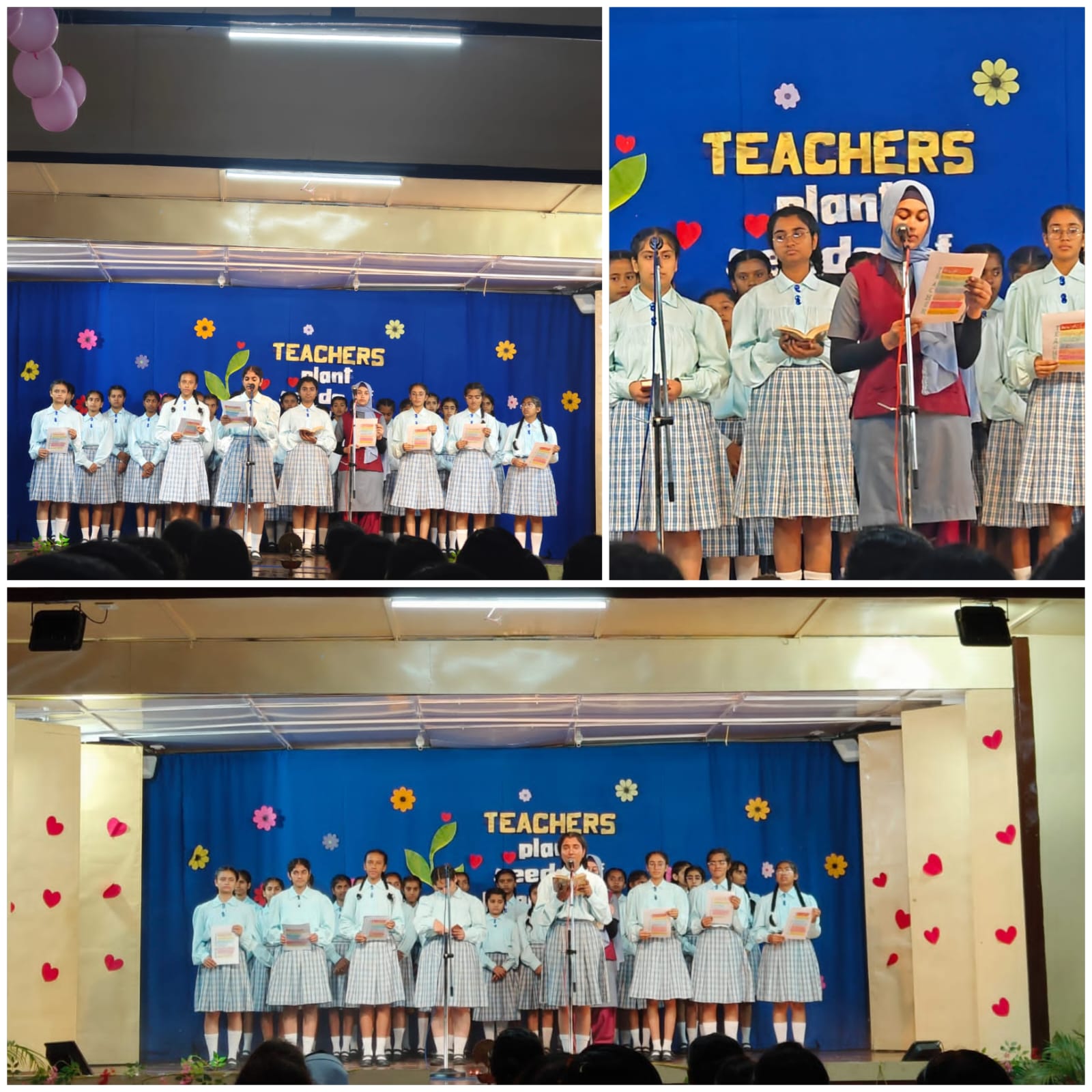 The students felicitated the teachers with handmade cards and then presented them with a gift as a token of love and gratitude by the management. In her address, Principal Sister Abha appreciated the dedication of the teaching fraternity, beautifully remarking that “teachers plant the seeds of knowledge, and with their guidance, young minds and hearts blossom into fruitful lives.”