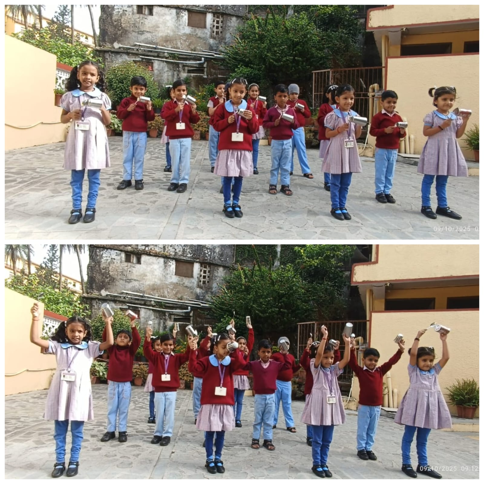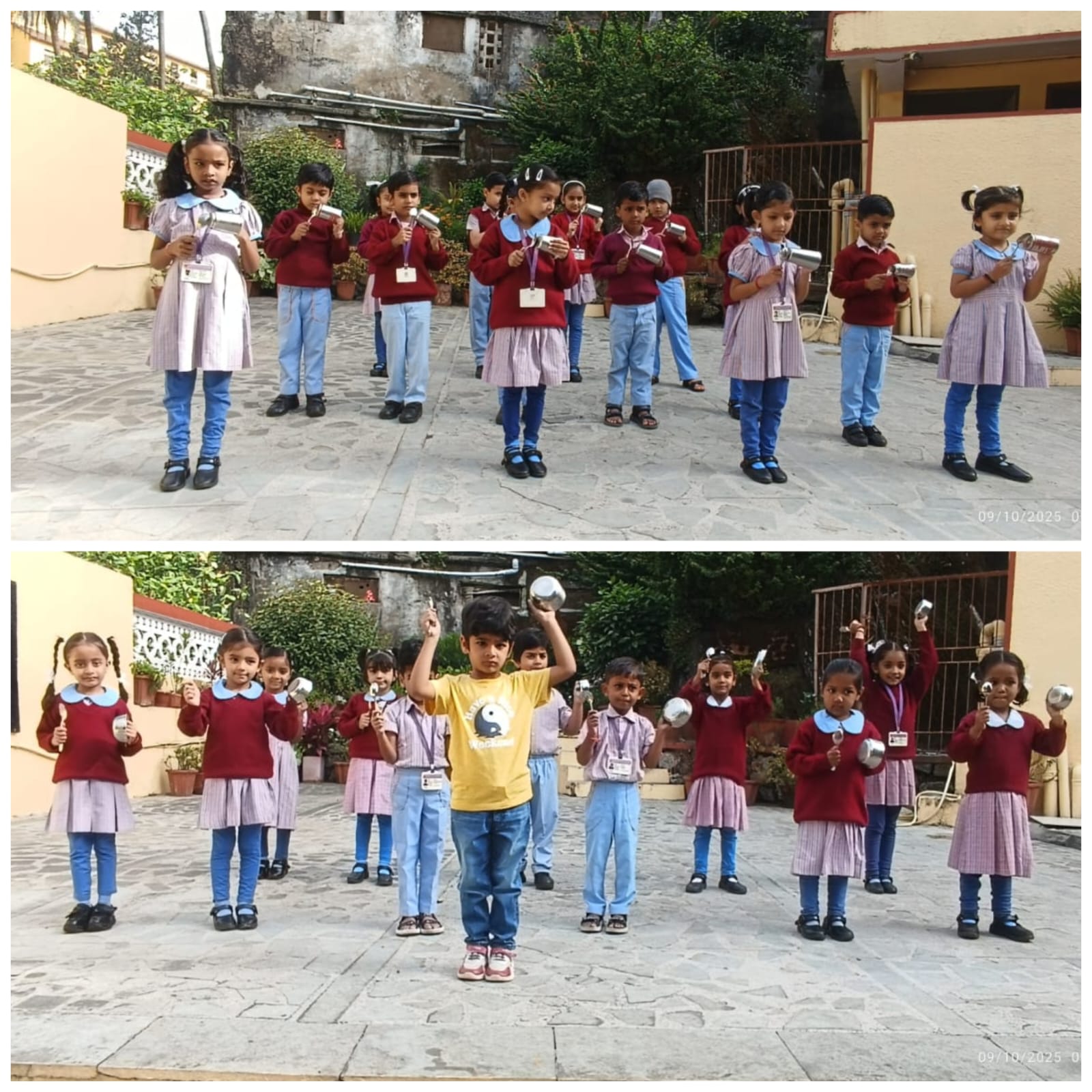 The Kindergarten students enthusiastically took part in an innovative activity titled “Making Music with Household Things.” Using everyday items like bowls, plates, glasses, and spoons, the little ones created rhythmic sounds under their teachers’ guidance, promoting creativity, coordination, and joy.