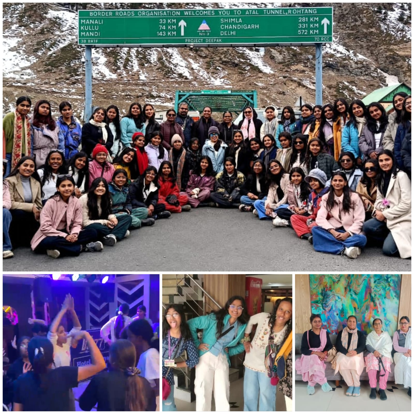 The journey continued to Chandigarh and then to Manali, offering scenic views of rivers, pine forests, and the Himalayan landscape. In Manali, visits to Solang Valley, Snow Point, and the Atal Tunnel provided thrilling snow experiences and insight into mountain environments and modern engineering. Students also visited the Hidimba Devi Temple, Van Vihar, and the Tibetan Monastery, gaining exposure to local culture, architecture, and values of peace and harmony. Time at Mall Road allowed students to explore local life through shopping and local cuisine, while warm and comfortable hotels ensured rest in the cold climate.