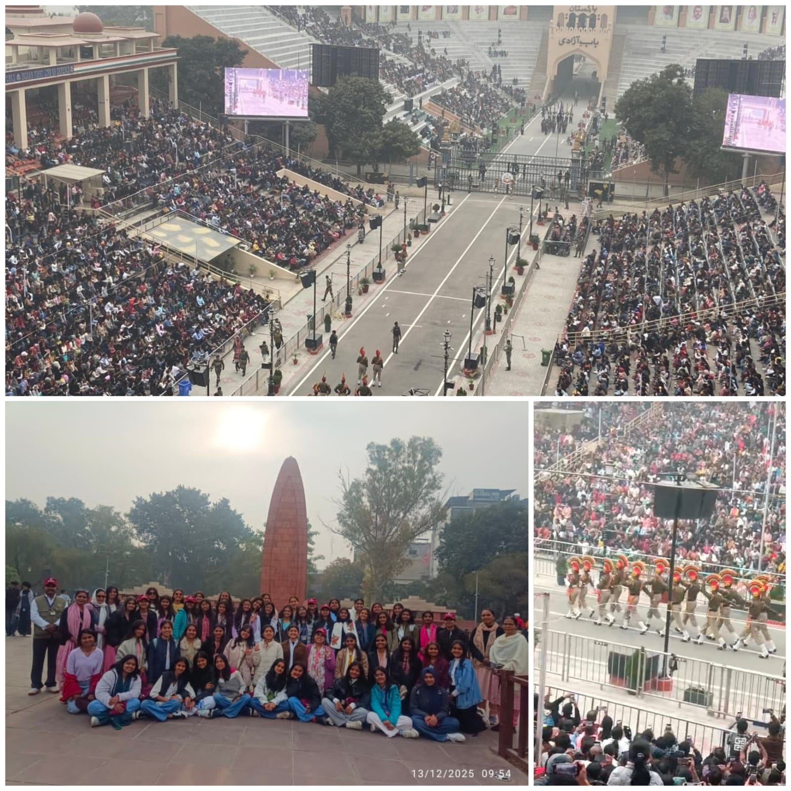In Amritsar, students visited places of cultural, historical, and national importance. Visits to temples enhanced their understanding of India’s rich heritage, Jallianwala Bagh highlighted the sacrifices of freedom fighters, and the Golden Temple inspired values of equality, service, and spiritual serenity. The Beating Retreat Ceremony at Wagah Border filled students with patriotism and pride. The day concluded with a joyful evening at the hotel with food, dance, and recreation.